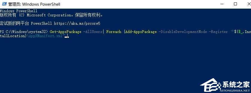 Get-AppxPackage -AllUsers| Foreach {Add-AppxPackage -DisableDevelopmentMode -Register “$($_.InstallLocation)AppXManifest.xml”}。