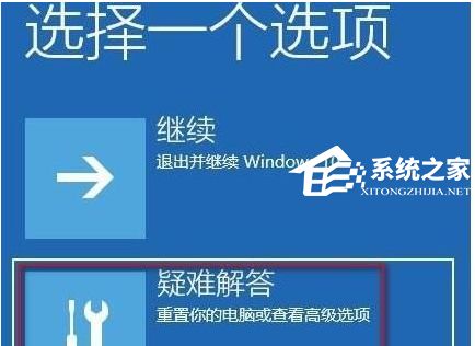 1. 遇到该问题可以长按电源键强制关机再开机看到WIN10登陆界面时再次长按电源键强制关机,如此三次后再开机会看到“查看高级修复选项”的按钮,点此按钮会进入WINRE环境,选择“疑难解答”。