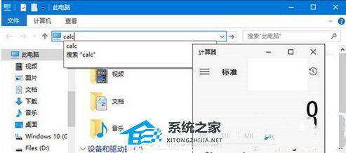 2、或者用户想要打开计算器,直接在资源管理器窗口中输入calc回车即可。