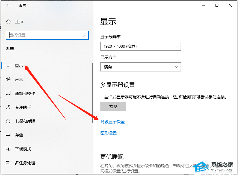 2. 在左侧点击显示,在右侧往下滑点击高级显示设置。