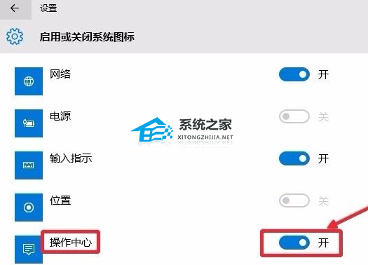 4. 这时候我们找到操作中心,将这里的开关关闭即可。