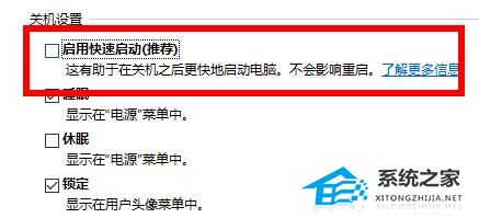 5. 最后将“启用快速启动”前面的√取消即可。