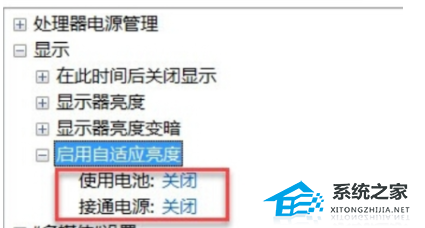 3、然后我们在弹出来的窗口中点击打开“启用自适应亮度”,关闭下方两个选项即可。