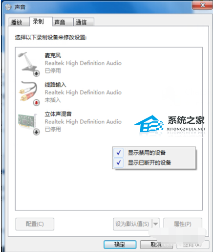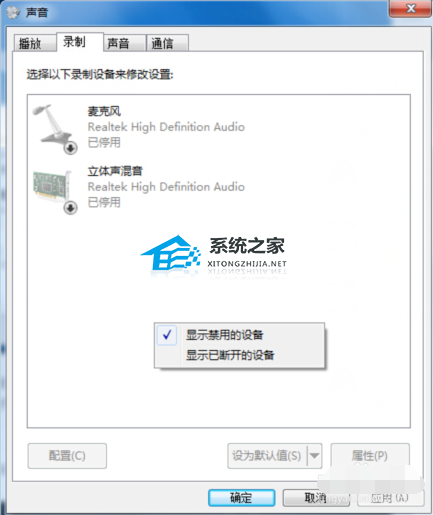 1、Win7系统下,如何开启禁用的麦克风。
