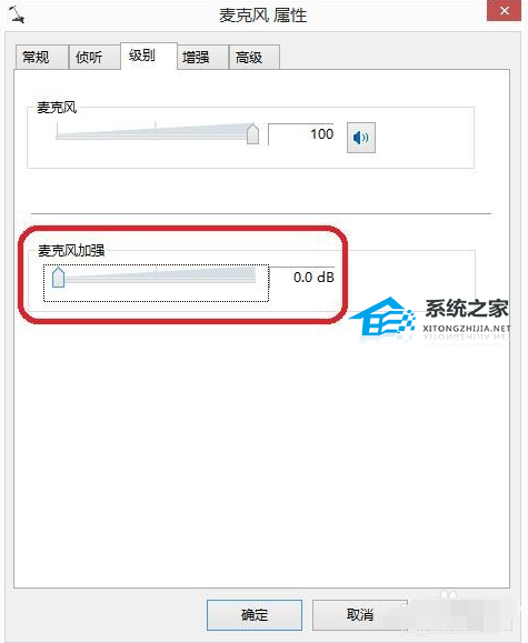 7、再点击“级别”,把“麦克风加强”调为10.0dB,可以适度调节麦克风音量。