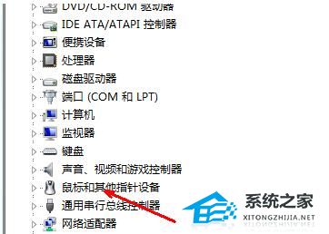 4、进入设备管理器,找到鼠标选项,打开之后,双击你的鼠标选项,打开鼠标属性页,这里有你的现有的鼠标驱动信息。