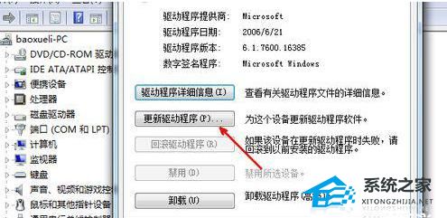 6、把你的ps2接口的鼠标拔下来,重新插上你的USB鼠标,插上之后,系统一般会开始自动安装驱动。如果没有安装,就再打开刚才的鼠标属性的页面,点击更新驱动程序按钮,更新一下驱动。一般如果是驱动原因的话,通过此方法便可以解决。