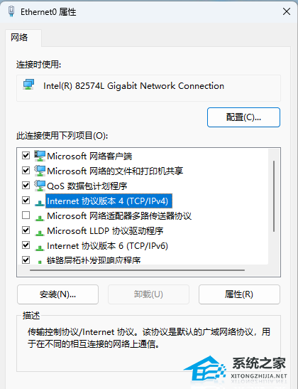 4、以太网 属性窗口,双击打开【Internet 协议版本 4 (TCP/IPv4)】;