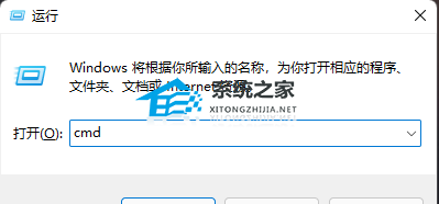 1、打开运行(Win+R),输入【cmd】命令,按确定或回车,打开命令提示符窗口;