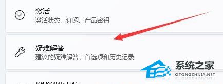 2、设置窗口,找到并点击【疑难解答(建议的疑难解答、首选项和历史记录)】;