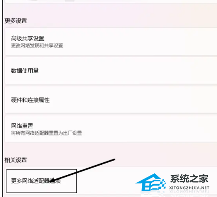 4、当前路径为:网络和 Internet 》 高级网络设置,点击相关设置下的【更多网络适配器选项】。
