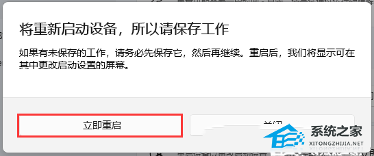 4. 提示将重新启动设备,所以请保存工作,点击【立即重启】。