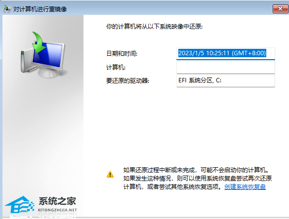 12. 对计算机进行重镜像弹窗,要还原的驱动器上的所有数据都将替换为系统映像中的数据。你确定要继续吗?没问题的话,点击【是】。