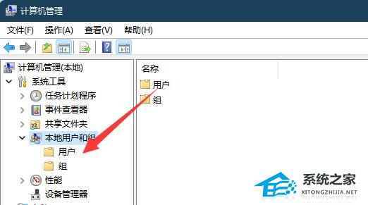 3. 然后进入“本地用户和组”下的“用户”选项。