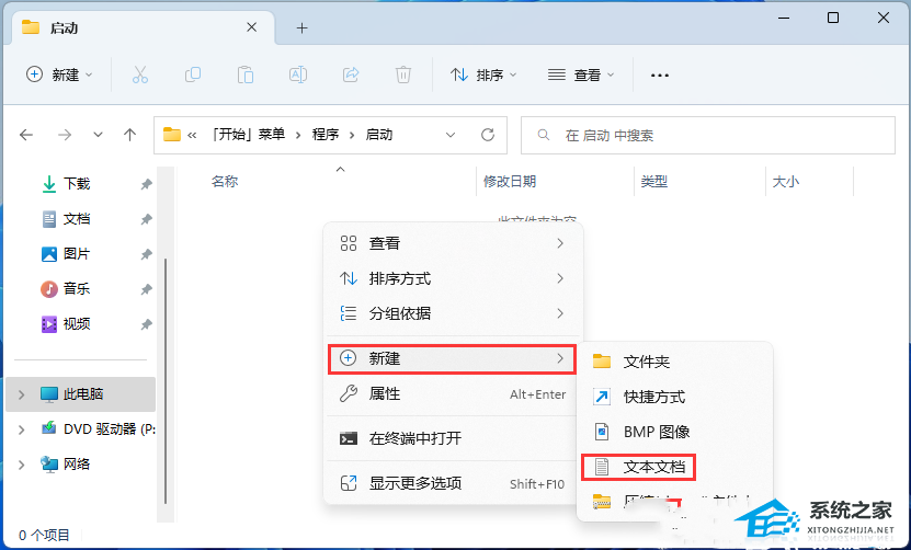 5. 打开的文件夹中,空白处,点击【右键】,在打开的菜单项中,选择【新建文本文档】;