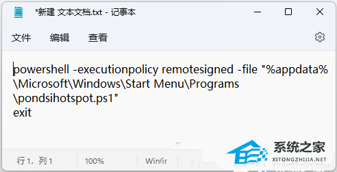 powershell -executionpolicy remotesigned -file "%appdata%MicrosoftWindowsStart MenuProgramspondsihotspot.ps1"