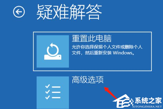 5. 进入疑难解答,选择“高级选项”,进入高级选项。