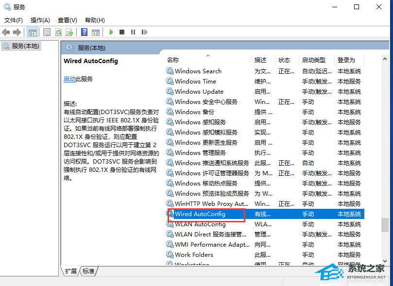 2. 找到Wired AutoConfig这一项服务。