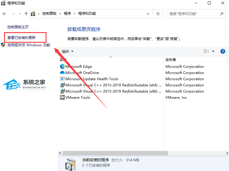 点击后,点击左方的【查看已安装的更新】。