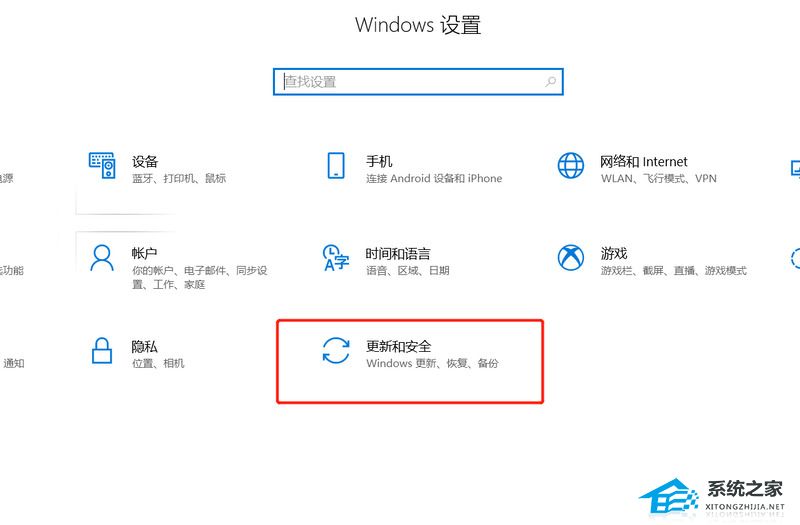 2、然后选择更新和安全;