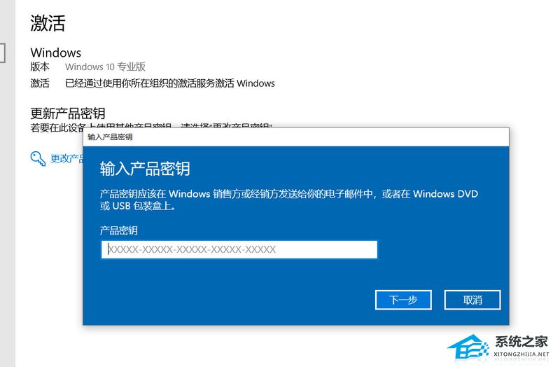5、然后输入密钥:W269N-WFGWX-YVC9B-4J6C9-T83GX。点击下一步。之后等待升级完成即可。