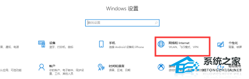 2、在”Windows设置“界面中,找到“网络和Internet”项进入。