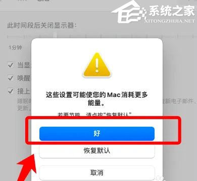 3. 勾选“当显示器关闭后,防止Mac自动进入睡眠”,勾选之后,会弹出一个提示框,点击“好”即可。