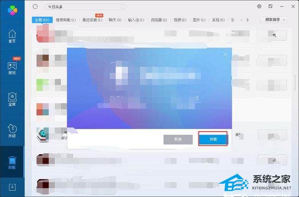 4、点击卸载,在弹出的页面中选择“卸载”即可将CAD软件彻底删除,不会有文件的残留。