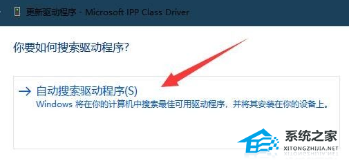 4、最后“自动搜索驱动程序”并更新安装后重启即可正常打印彩色文档。