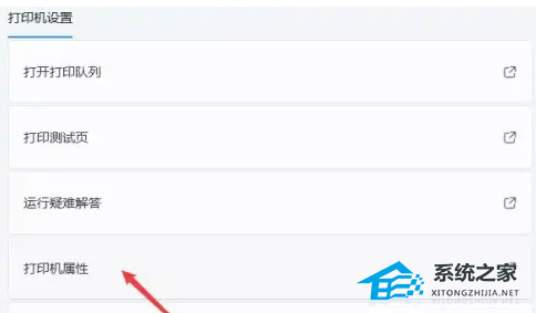 4. 进入打印机设置界面,在功能列表中点击打开“打印机属性”。
