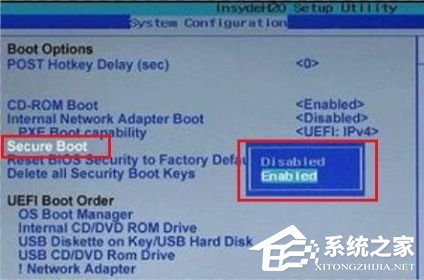 4、最终按下“F10”开展保存,弹出窗口中选择“Yes”保存设置,重启就可以解决安全启动难题。
