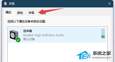 3、在打开的窗口中,切换到上方的“声音”选项卡。