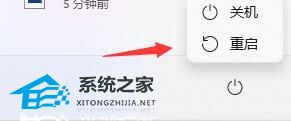 2、然后按住键盘上的“shift”键,并点击其中的“重启”按钮。