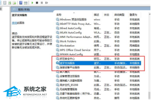 3、进入到服务界面后,我们向下查找,找到【蓝牙支持服务】。