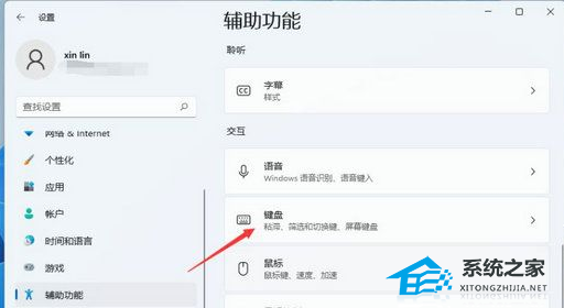 第三步:在进入辅助功能窗口的右侧,鼠标下拉就可以看到 键盘 选项,鼠标点击进入键盘选项找到设置 屏幕键盘 选项。