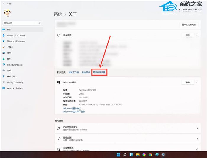 进入关于界面,点击【高级系统设置】,打开系统属性窗口。