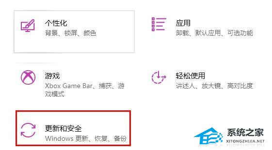 2、在windows设置中点一下“更新和安全”选项。
