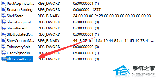 5. 如果右边没有那就右键“新建”一个“DWORD值”并将它改成“AltTabSettings”。