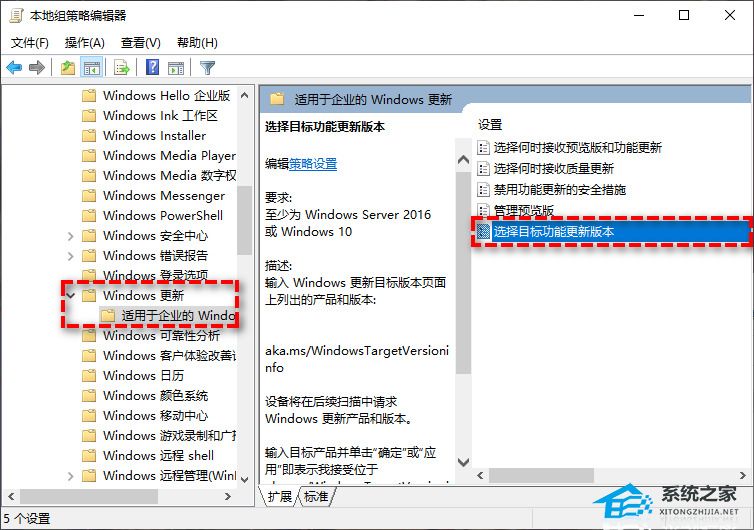 3、双击此文件夹下的“选择目标功能更新版本”设置。