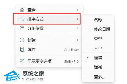 2、那么可以先右键文件夹空白处,选择想要的“排序方式”。