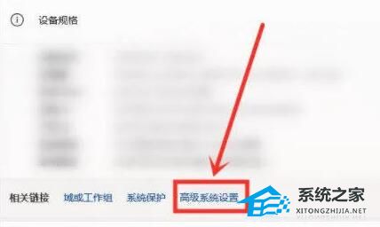 3、然后在设备规格下方找到蓝色字体的“高级系统设置”。
