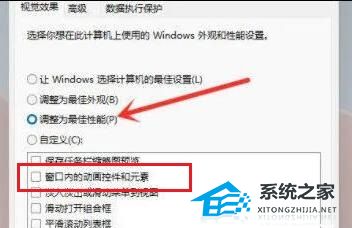 5、然后勾选“自定义”,然后勾选其中的“窗口内的动画控件和元素”,再点击“确定”即可。