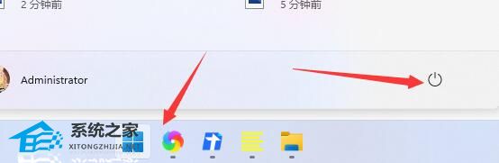 1、首先我们找到下方的开始菜单,然后点击电源按键。
