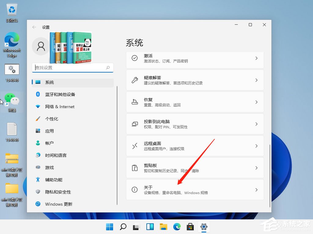 2、设置(Win+i)窗口,右侧系统下,找到并点击关于(设备规格、重命名电脑、Windows 规格)选项。