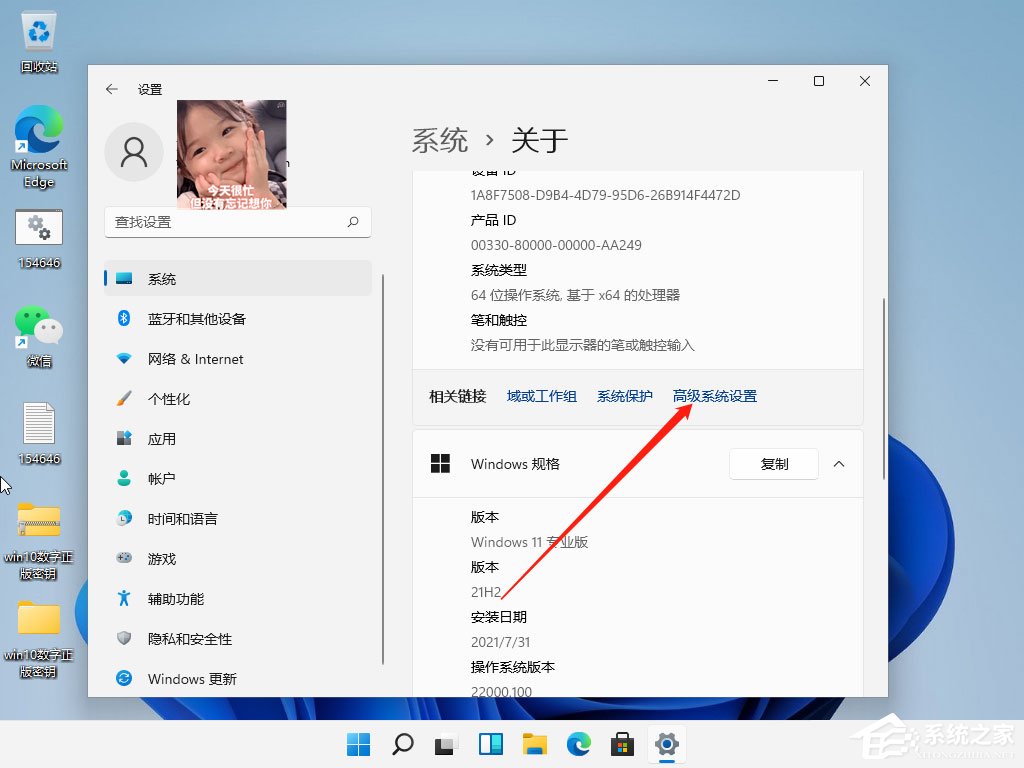 3、关于下,找到并点击高级系统设置,打开系统属性窗口。