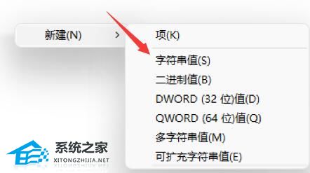 3、然后右键右边空白处,选择新建一个“字符串值”。