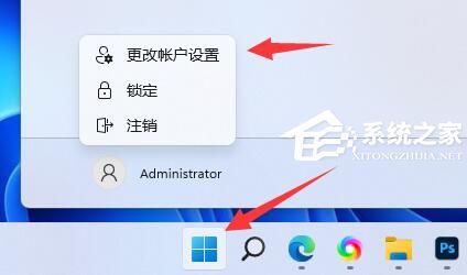 1、点击开开始菜单,点击账户名,进入“更改账户设置”。