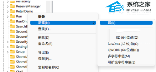 3、然后我们点击Shell Extensions 右键新建“项”。