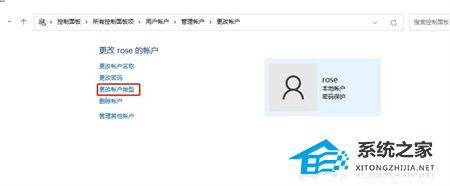 3、选择要更改的账户,然后点击更改账户类型。