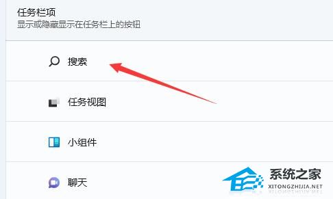 2、接着在任务栏项下就可以看到“搜索”选项。